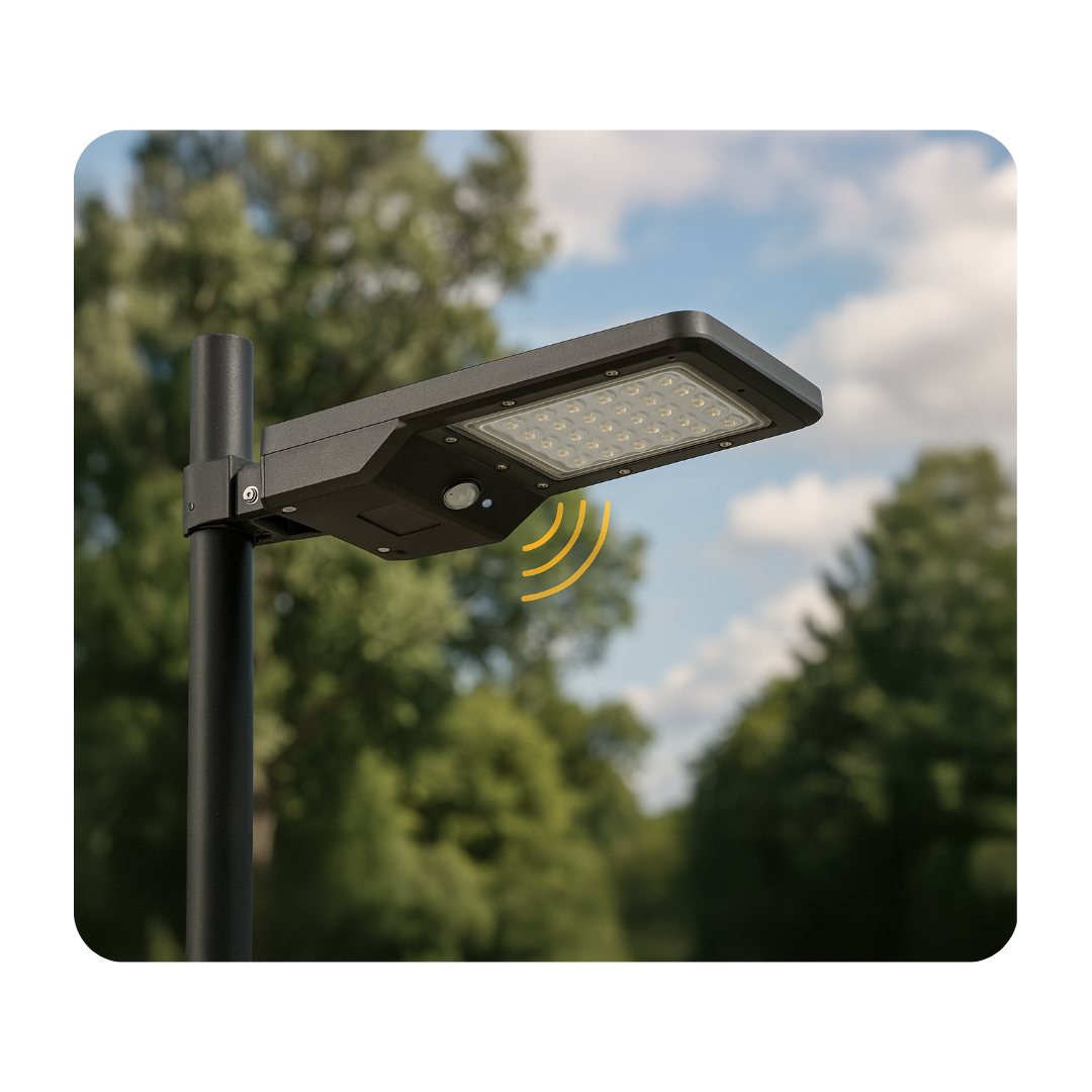 Grâce au lampadaire solaire led BEAMER-24, équipez vos parkings, stades, routes en toute simplicité ! Puissance: 24W | Flux lumineux: 1600 lumens